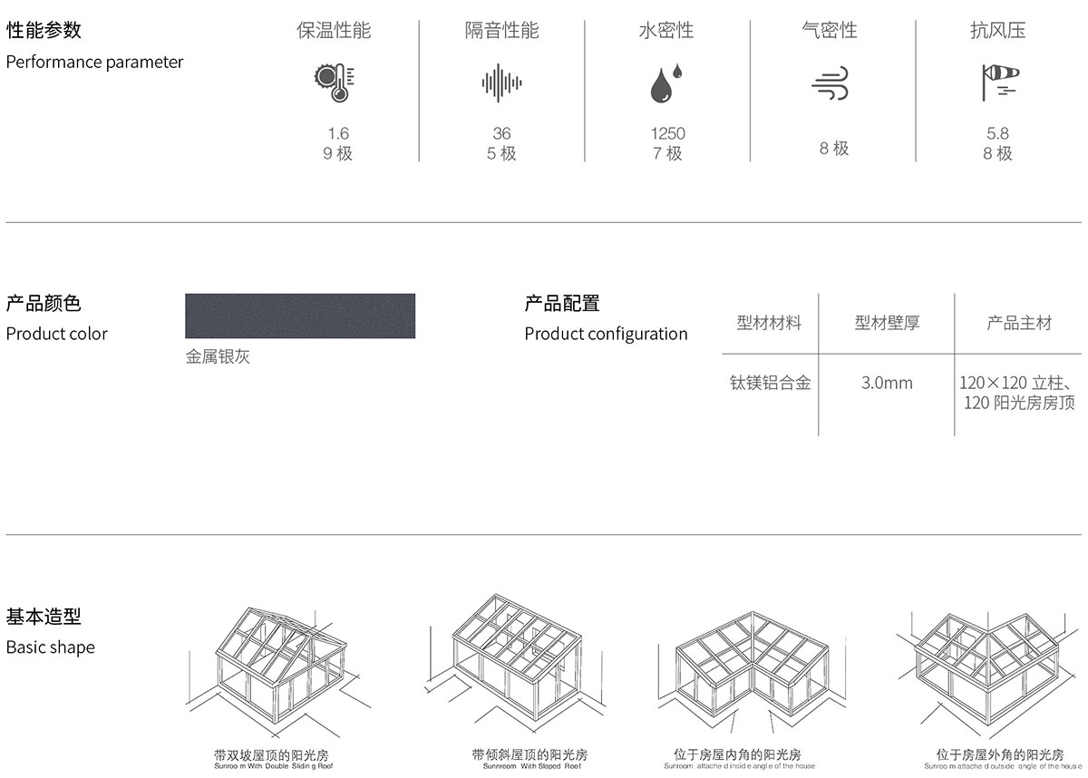 120 歐式陽光房性能參數(shù)-卡諾德式門窗