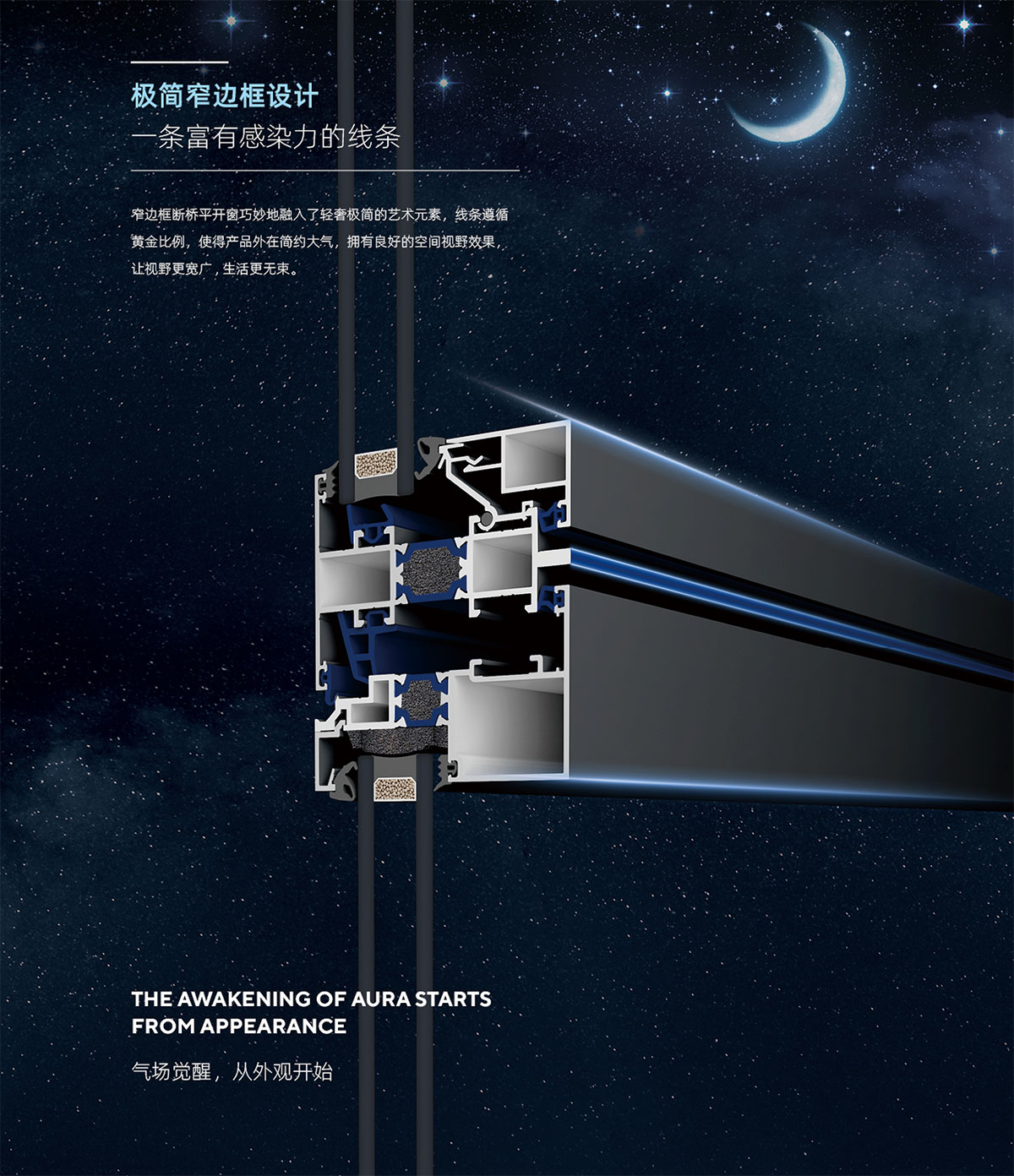 - 窄邊型材設計, 增加窗扇透光性 (采光面積超過整窗面積 83% , 比普通門窗高 10% ) , 保證良好通透性;
