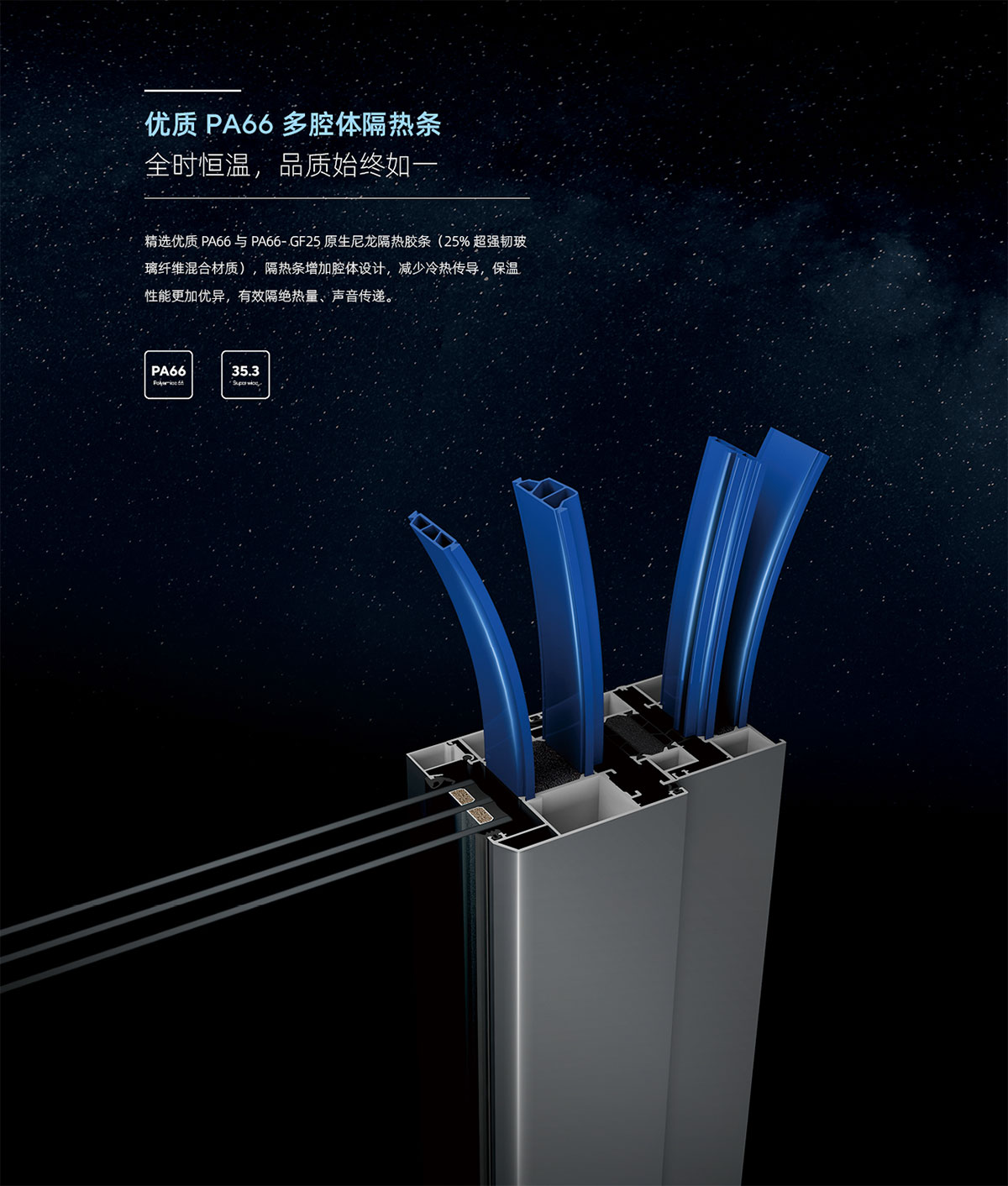 • 框 、挺、扇均為矩形腔體設計,配合注膠角碼和帶注膠功能連接件,連接牢固, 框架結構穩定。