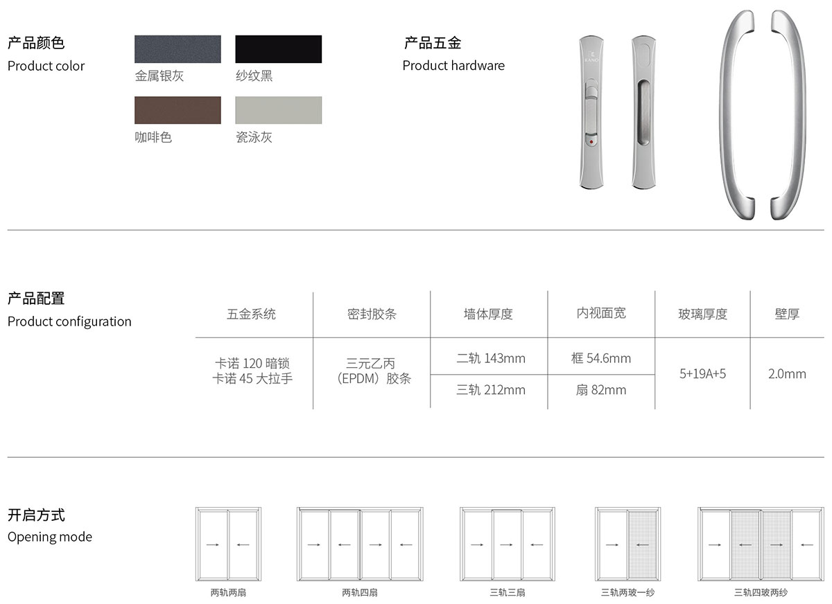 • 采用國(guó)家標(biāo)準(zhǔn)高精級(jí)鋁型材及卡諾專展定制五金配件 ,豪華大氣 ,內(nèi)置多鎖點(diǎn)的結(jié)構(gòu)設(shè)計(jì) ,令防盜、安全性能更為優(yōu)越。
